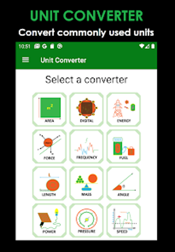 Unit Converter is an Android application developed by Transpose Solutions that provides a versatile tool for converting a wide range of units across various categories. The app offers 15 commonly used units and a currency converter, including areas, digital storage, energy, force, frequency, and more.